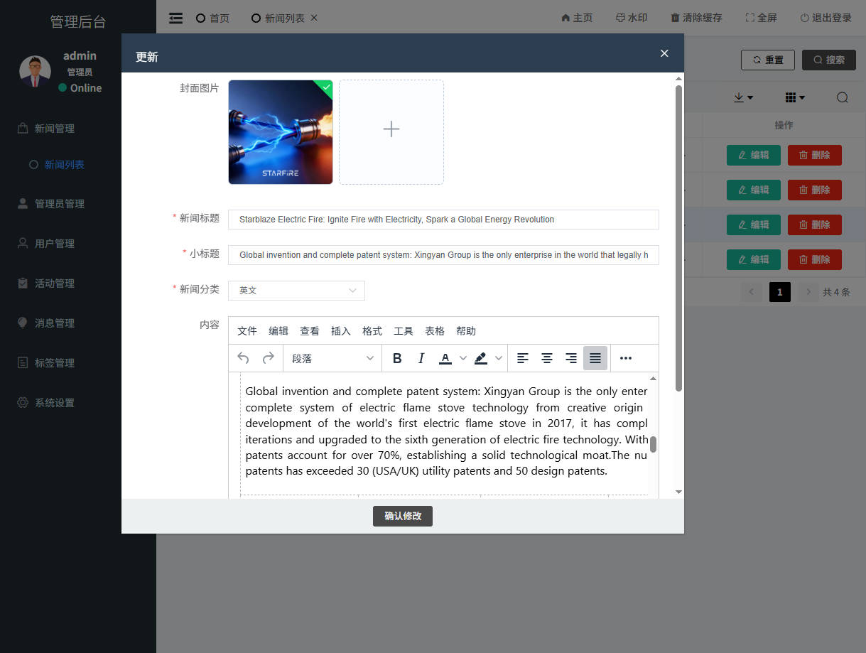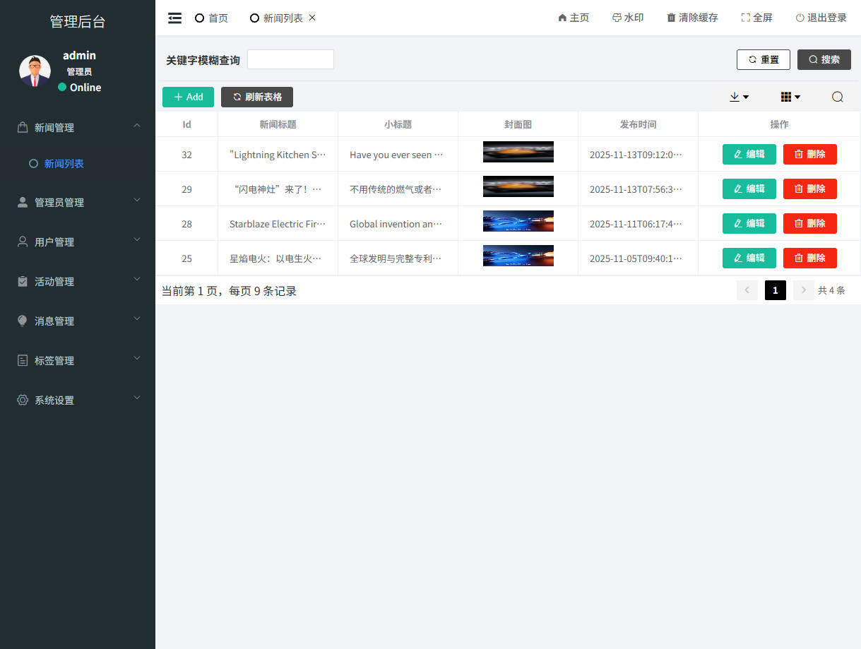 - 配套后台管理系统